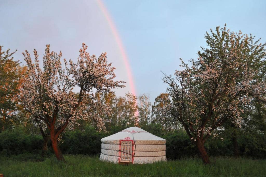 Jurty jsou umístěné v rozlehlém sadu, kde vládne ticho, zeleň a harmonie. Celý prostor působí útulně, odpočinkově a zároveň velmi osobitě. Stavby inspirované tradičními mongolskými obydlími jsou moderně vybavené a umožňují hostům zažít zcela jiný styl pobytu. Zároveň se zde dbá na respekt k přírodě – glamping klade důraz na udržitelnost a harmonii s okolím.